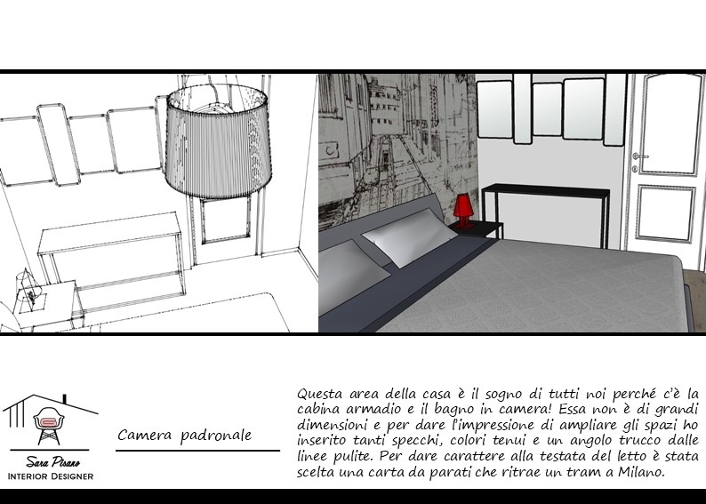 Dopo aver deciso se effettuare uno studio di Rilocation oppure Restyling, ti invierò due proposte con la moodboard degli ambienti richiesti, la planimetria con gli arredi, lo schema dei colori, degli schizzi e dei Rendering 3D degli ambienti richiesti , un video del tuo nuovo appartamento e la lista degli acquisti e degli arredi. Le proposte saranno dei book con indicate tutte le spiegazioni delle scelte fatte.